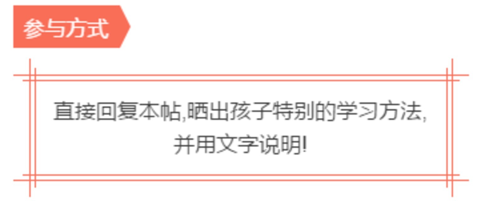 你家孩子都有什么样的特别学习诀窍呢?希望你们不要吝啬,分享给大家哦!让其他的爸爸妈妈们也从中获得学习.